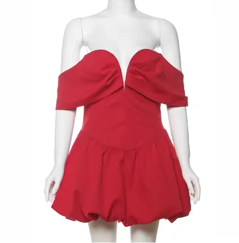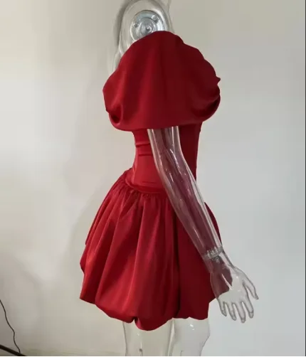 Elegant Vintage Style Solid Color Dress High Quality Off-the-Shoulder Puffy Short with Zippers Decoration Eco-Friendly Woven